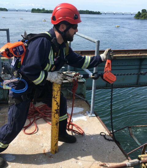 Nous effectuons l’installation de systèmes de protection contre les chutes et sauvetage en espaces clos incluant des points d’ancrage, des lignes de vie, des systèmes de rails, des bases de potence etc.
