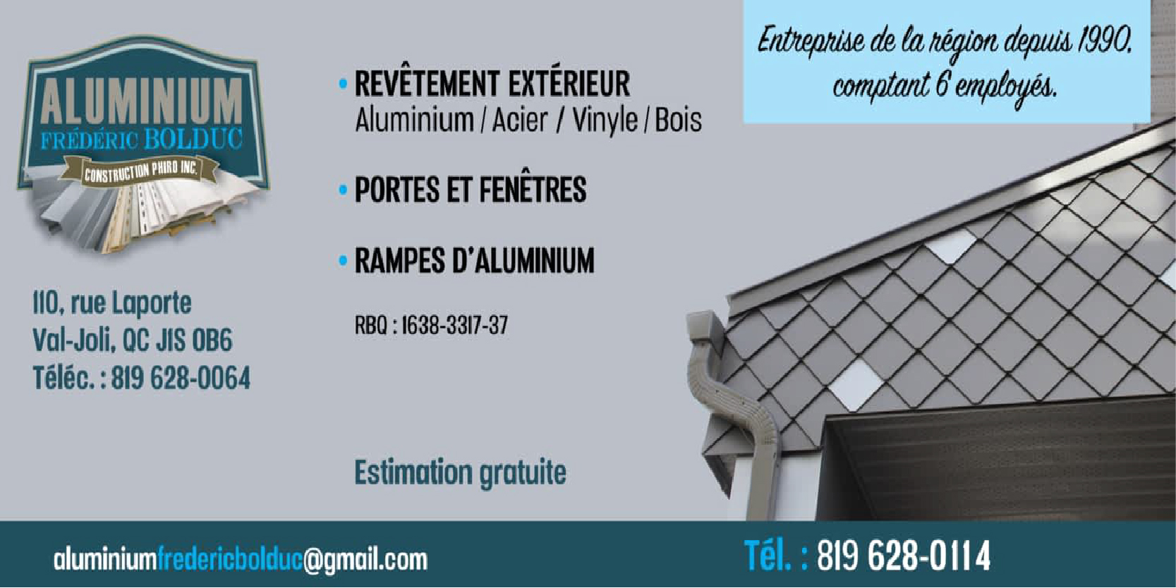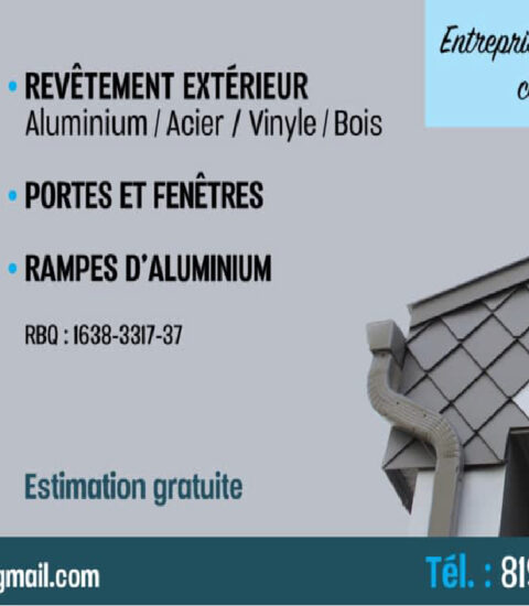ALUMINIUM FRÉDÉRIC BOLDUC INC est une entreprise spécialisée dans les travaux de revêtement extérieur, l’installation de portes et fenêtres, ainsi que la fabrication et la pose de rampes en aluminium.