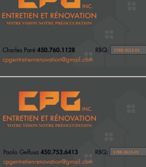 CPG ENTRETIEN ET RÉNOVATION INC est une entreprise dynamique et expérimentée, spécialisée dans la construction et la rénovation de bâtiments tant commerciaux que résidentiels. Forte de son expertise, elle offre des services variés allant de l’entretien régulier à des projets de rénovation complexes, en s’assurant de répondre aux besoins spécifiques de chaque client.