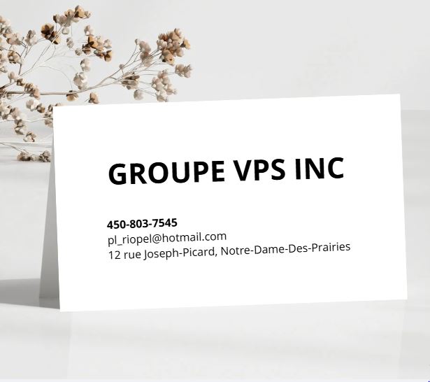 GROUPE VPS INC Obtenir un itinéraire Appelez maintenant Sauvegarder Partager Partager facebook twitter linkedin Description Numéro de licence RBQ: 5818-6693-01 Galerie fermer Informations commerciales Obtenir un itinéraire 12, Rue Joseph-Picard, Notre-Dame-Des-Prairies, (Qc) J6E9J3 (450) 803-7545 pl_riopel@hotmail.com Contacter l'entreprise Pronet_Construction pl_riopel@hotmail.com Envoyer un message Aujourd'hui Ouvrir8h00 - 17h00 lundi8h00 - 17h00mardi8h00 - 17h00mercredi8h00 - 17h00jeudi8h00 - 17h00vendredi8h00 - 17h00