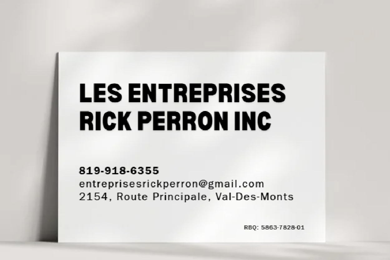 LES ENTREPRISES RICK PERRON INC Obtenir un itinéraire Appelez maintenant Sauvegarder Partager Partager facebook twitter linkedin Description Numéro de licence RBQ: 5863-7828-01 Galerie fermer Informations commerciales Obtenir un itinéraire 2154, Route Principale, Val-Des-Monts, (Qc) J8N2J8 (819) 918-6355 entreprisesrickperron@gmail.com Contacter l'entreprise Pronet_Construction entreprisesrickperron@gmail.com Envoyer un message Aujourd'hui Ouvrir8h00 - 17h00 lundi8h00 - 17h00mardi8h00 - 17h00mercredi8h00 - 17h00jeudi8h00 - 17h00vendredi8h00 - 17h00