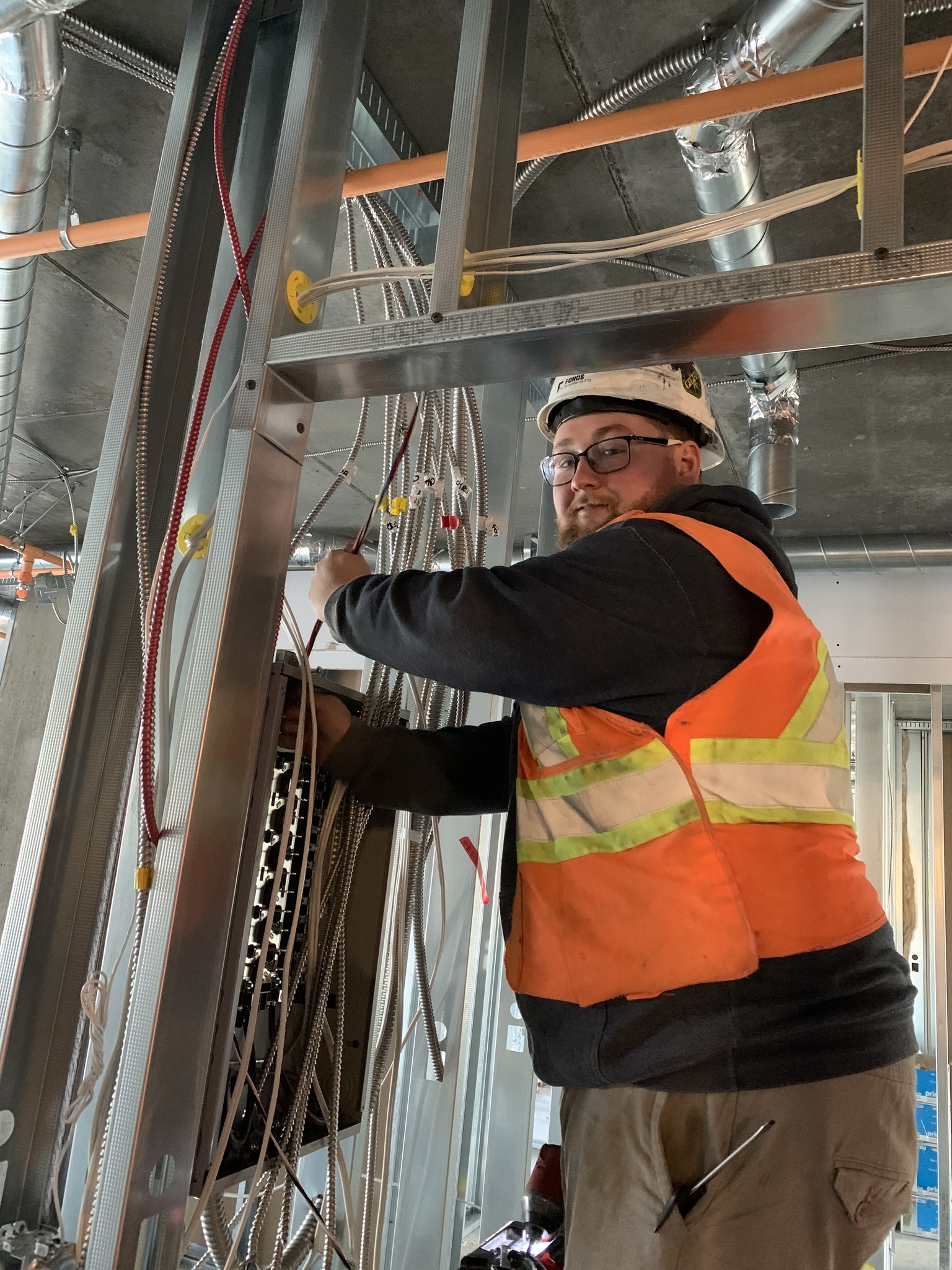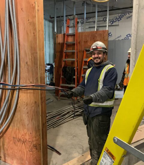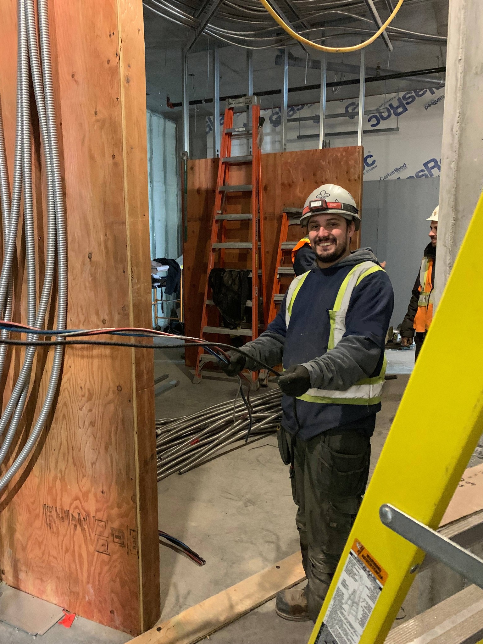 En janvier 2012, Pierre-Luc Blouin, le fils de Chantal & Sylvain, commence son apprentissage avec l’équipe d’électriciens, pour ensuite acquérir sa carte de compétence Compagnon en 2014.