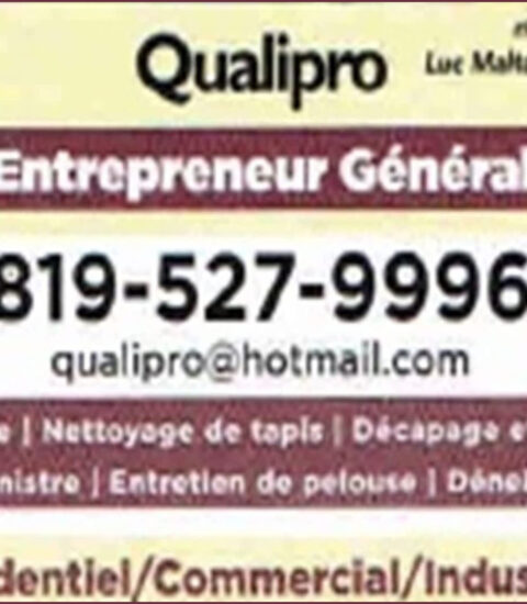 QUALIPRO INC est un entrepreneur général polyvalent qui se démarque par la diversité et la qualité de ses services offerts dans les secteurs résidentiel, commercial et industriel. Forte d’une équipe dynamique et expérimentée, l’entreprise propose un large éventail de services, allant du déneigement à l’excavation, en passant par l’entretien de pelouse, l’aménagement paysager, la rénovation, ainsi que le décapage de surfaces.