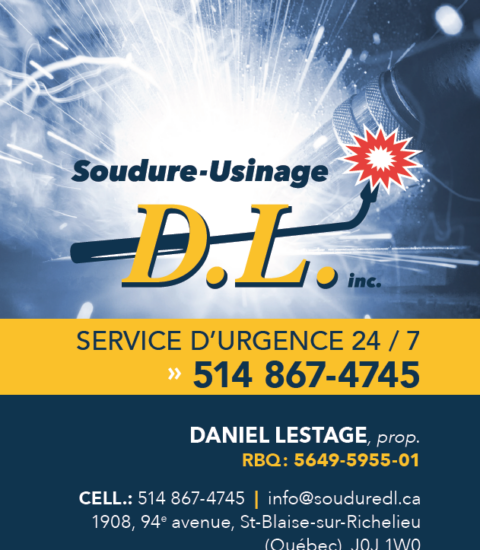 J’ai plus de 30 ans d’expérience en soudure et je suis propriétaire de SOUDURE-USINAGE D.L. depuis 20 ans.