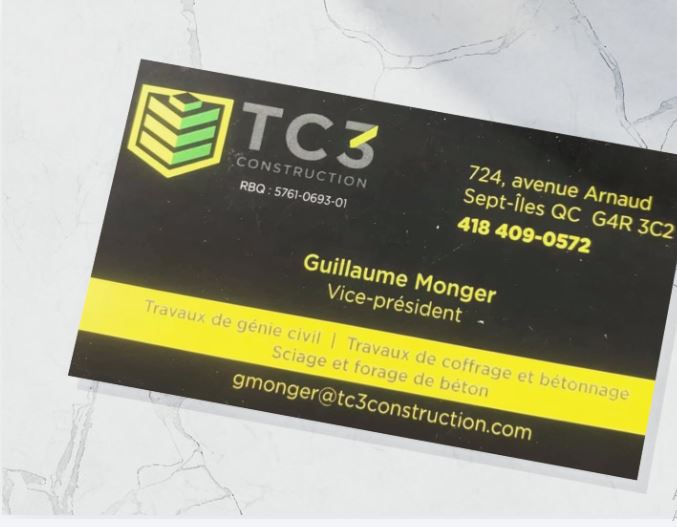 TC3 Construction est une entreprise fondée en 2018 par Jonathan Arsenault et Guillaume Monger, passionnés par le domaine de la construction. Leur objectif était de se démarquer en se spécialisant dans les travaux de sciage de béton.
