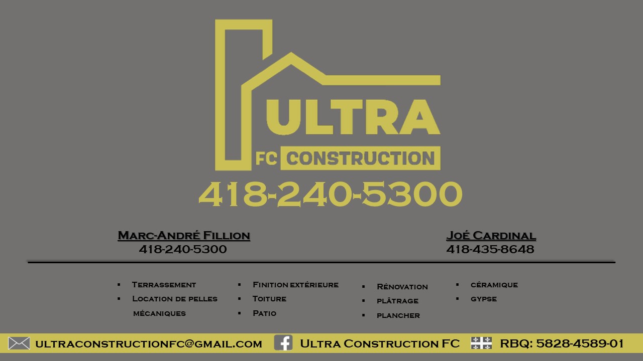 ULTRA CONSTRUCTION FC INC est un entrepreneur général spécialisé dans la construction et la rénovation, offre des services variés tels que l’excavation, le terrassement, le plâtrage et le revêtement. Grâce à des équipements modernes et une équipe qualifiée, l’entreprise garantit des travaux sécurisés et de haute qualité. Leur expertise en terrassement assure des fondations solides pour tous types de projets.